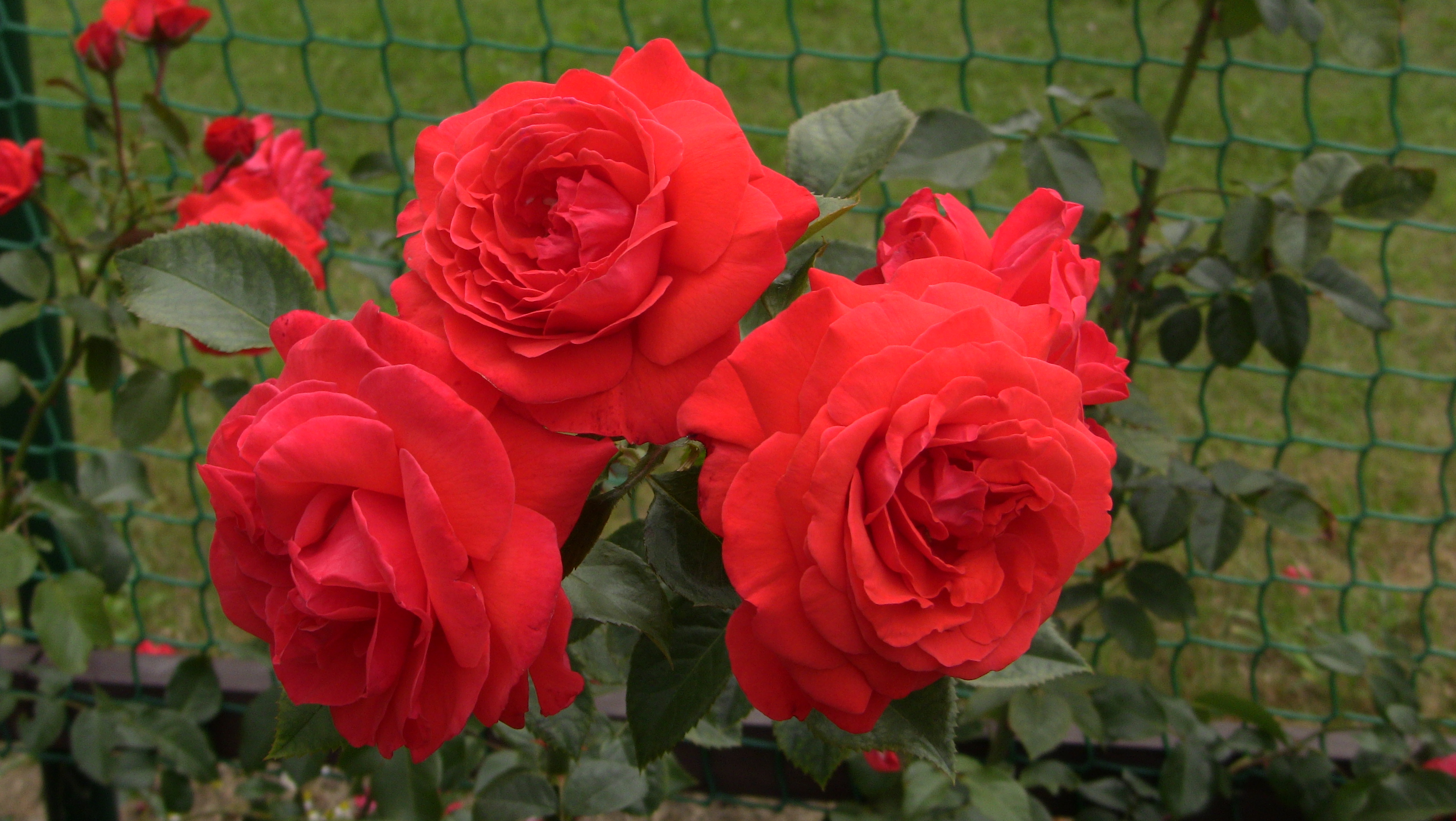 Morfoloģija. Krūms piramidāli izplests, spēcīgs, labi zarots, līdz 2,2 m augsts. Lapas lielas, tumši zaļas, ādaini spīdīgas, ļoti kupls un dekoratīvs lapojums. Ziedi koši oranžsarkani, lieli (7-9 cm), bagātīgi pildīti (26-40 vainaglapas), tiem patīkams, spēcīgs aromāts, ar nelieliem pārtraukumiem zied krāšņi līdz vēlam rudenim.