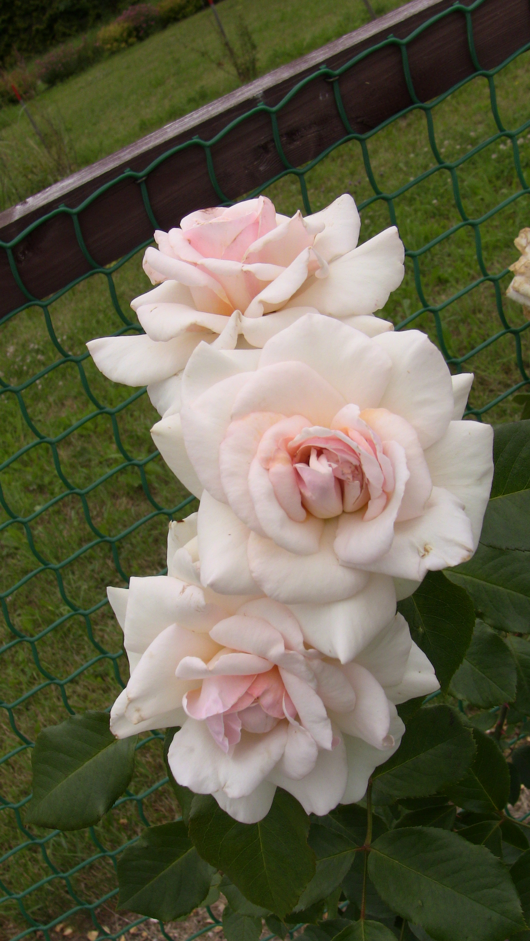 Morfoloģija. Krūms stāvs, spēcīgi zarots, noturīgiem 1,7-2,5 m gariem dzinumiem. Lapas lielas, tumši zaļas, spīdīgas. Ziedi krēmbalti ar gaiši rozā centru, izziedot kļūst balti, lieli (7-9 cm), bagātīgi pildīti (26-40 vainaglapas), graciozi veidoti, vāju smaržu, sakārtoti pa vienam vai 3-5 ziedkopā. Zied ilgstoši līdz vēlam rudenim.
