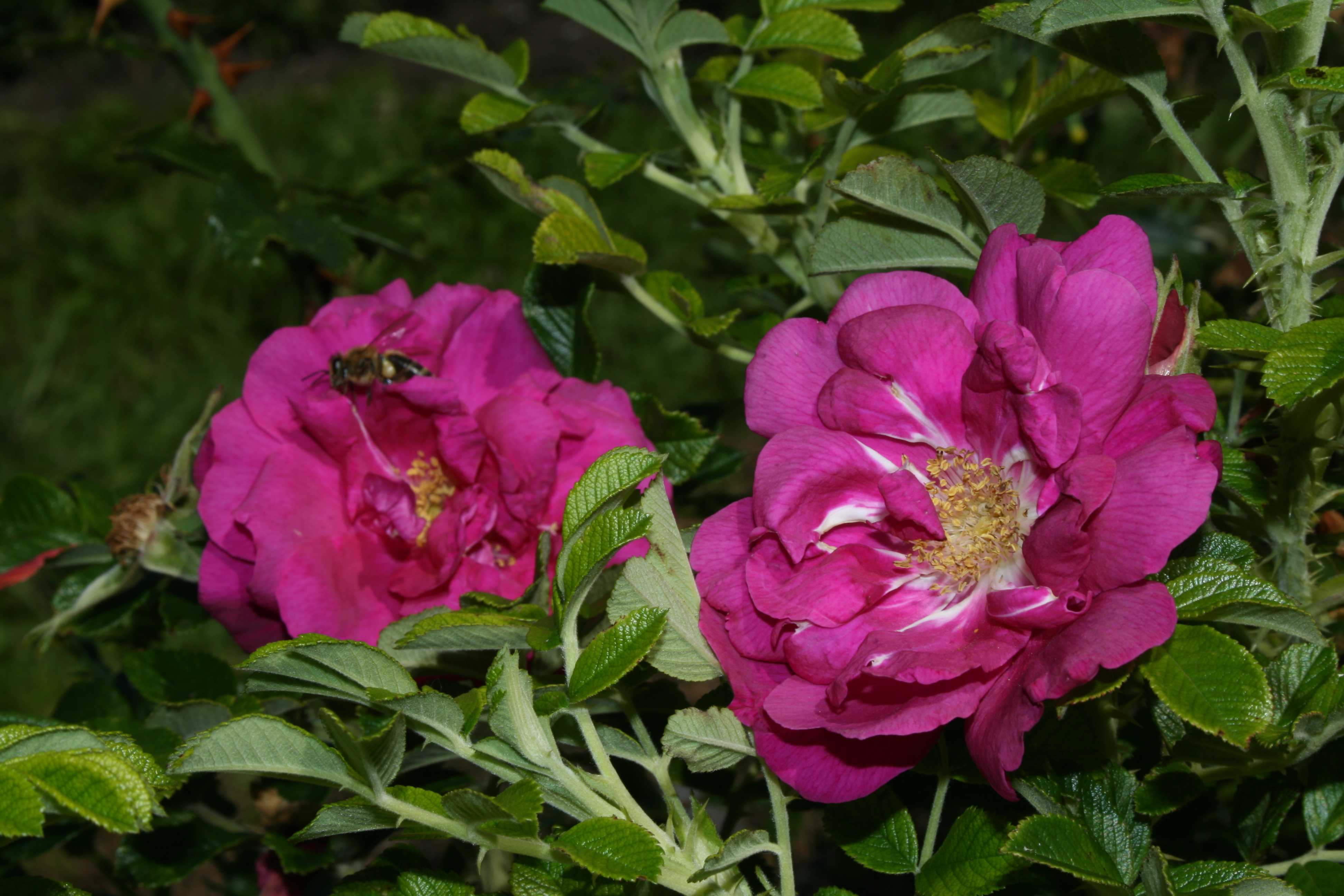 Morfoloģija. Krūms plati izplests (tā platums pat 1-1,2 m), labi zarots, līdz 0,4 – 0,5 m augsts, ar daudziem dzeloņainiem dzinumiem. Lapas mazas, rievainas, tumši zaļas, vāju spīdumu. Ziedi purpura krāsā, izziedot nedaudz balo, vidēji lieli (5,5-6,5cm), pildīti (26-35 vainaglapas), spēcīga smarža, sakārtoti ziedkopā pa 3-9 katrā. Pēc noziedēšanas ziedus nevajadzētu steigties nogriezt, jo šķirnei veidojas atsevišķi augļi. Zied no jūnija sākuma līdz rudenim.