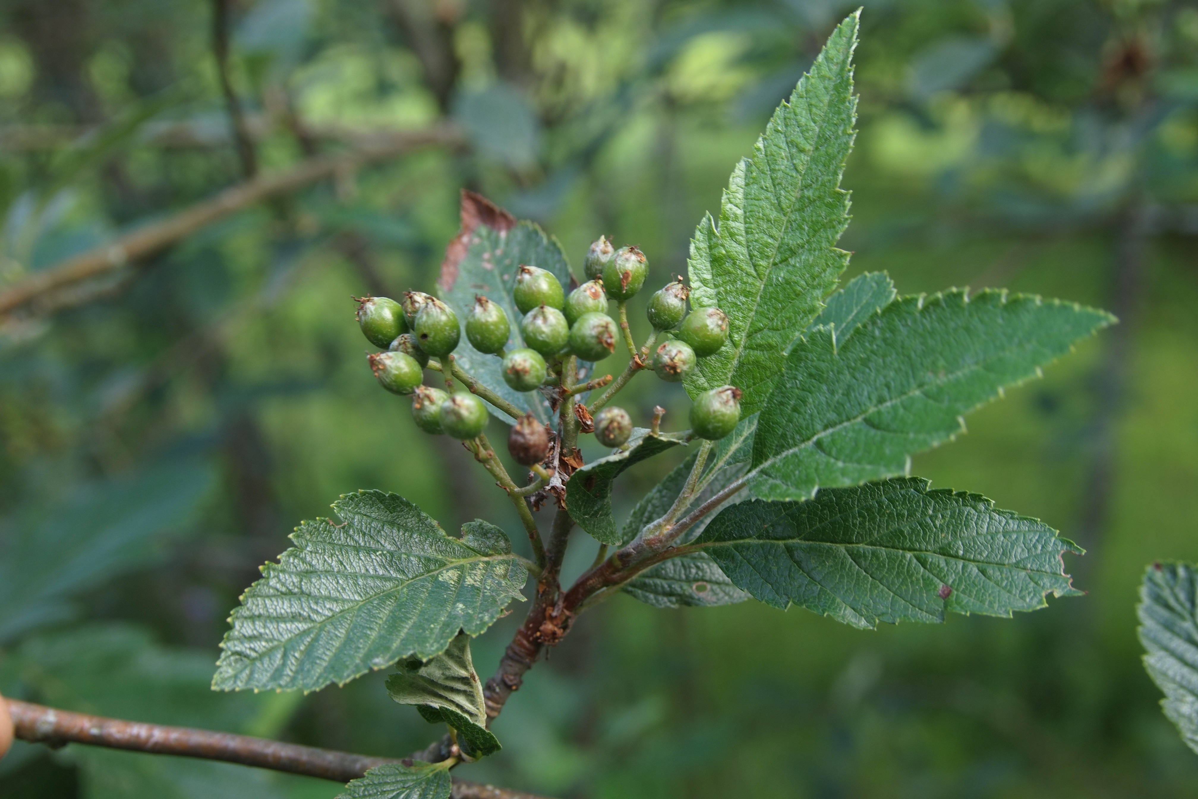 Morfoloģija. Vasarzaļš, līdz 8 m augsts koks vai krūms. Lapas 8-12 cm garas, vienkāršas, ovālas līdz gandrīz eliptiskas, dziļi šķeltas, apakšpuse tūbaina, balti - pelēka. Lapu daivas 1/3 – 3/4 pret vidusdzīslu. Lapās 8 sāndzīslu pāri. Ziedi sakopoti saliktā vairogā, balti. Augļi sarkani, lodveida.