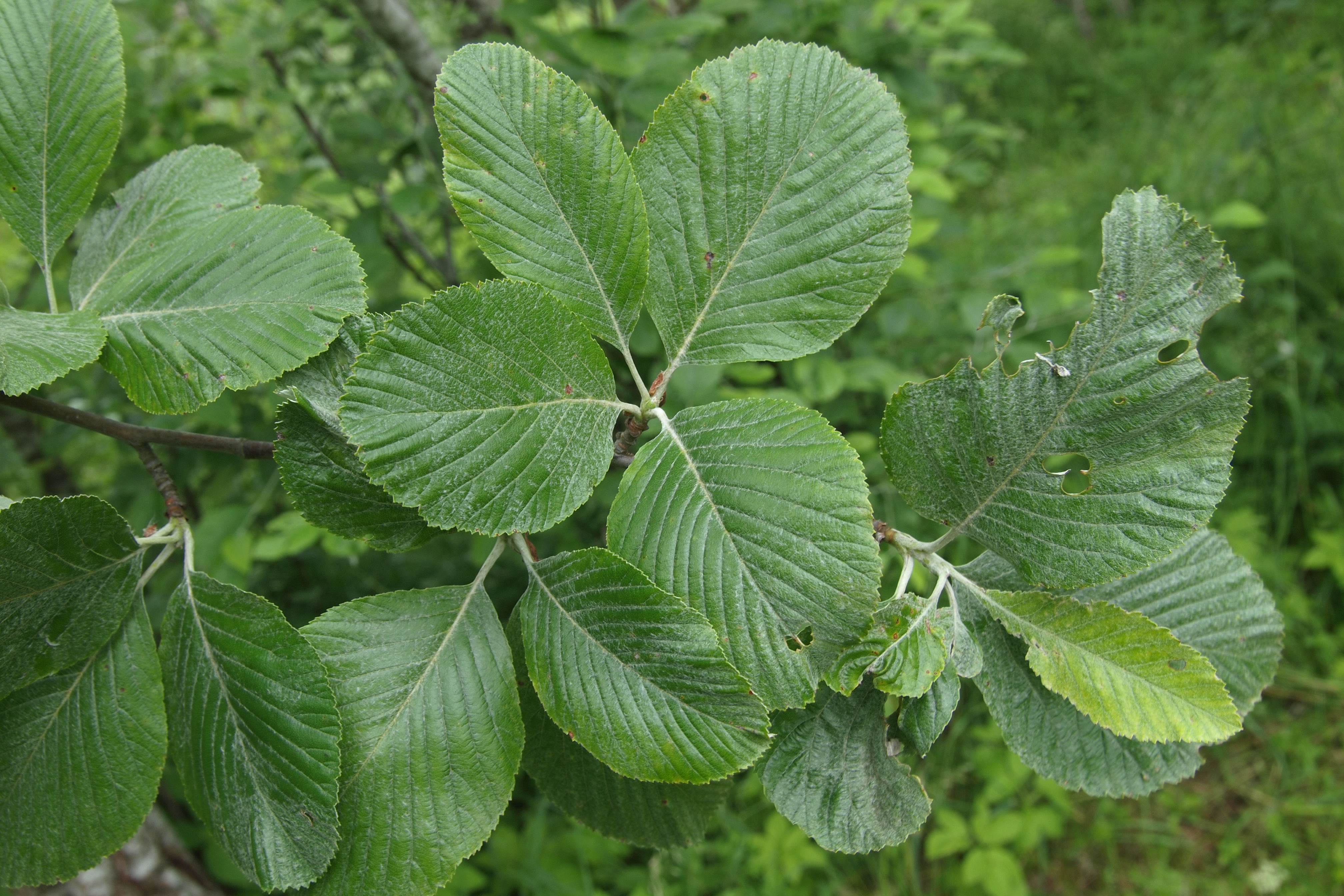 Morfoloģija. Vasarzaļš, 5-7 m augsts koks vai krūms. Jaunie dzinumi sarkanīgi, noklāti ar ieapaļām lenticelēm. Lapas gandrīz apaļas līdz plati eliptiskas, 5-6 sānu dzīslu pāri. Lapas virspusē zaļas, ādainas, apakšpuse balti vai pelēcīgi matainas, 5-10 cm garas un 4-10 cm platas. Lapas plātnes pamats ķīļveidīgs. Ziedi saliktā vairogā, balti. Augļi ieapaļi, koši sarkani, spīdīgi, 10-12 mm diametrā.