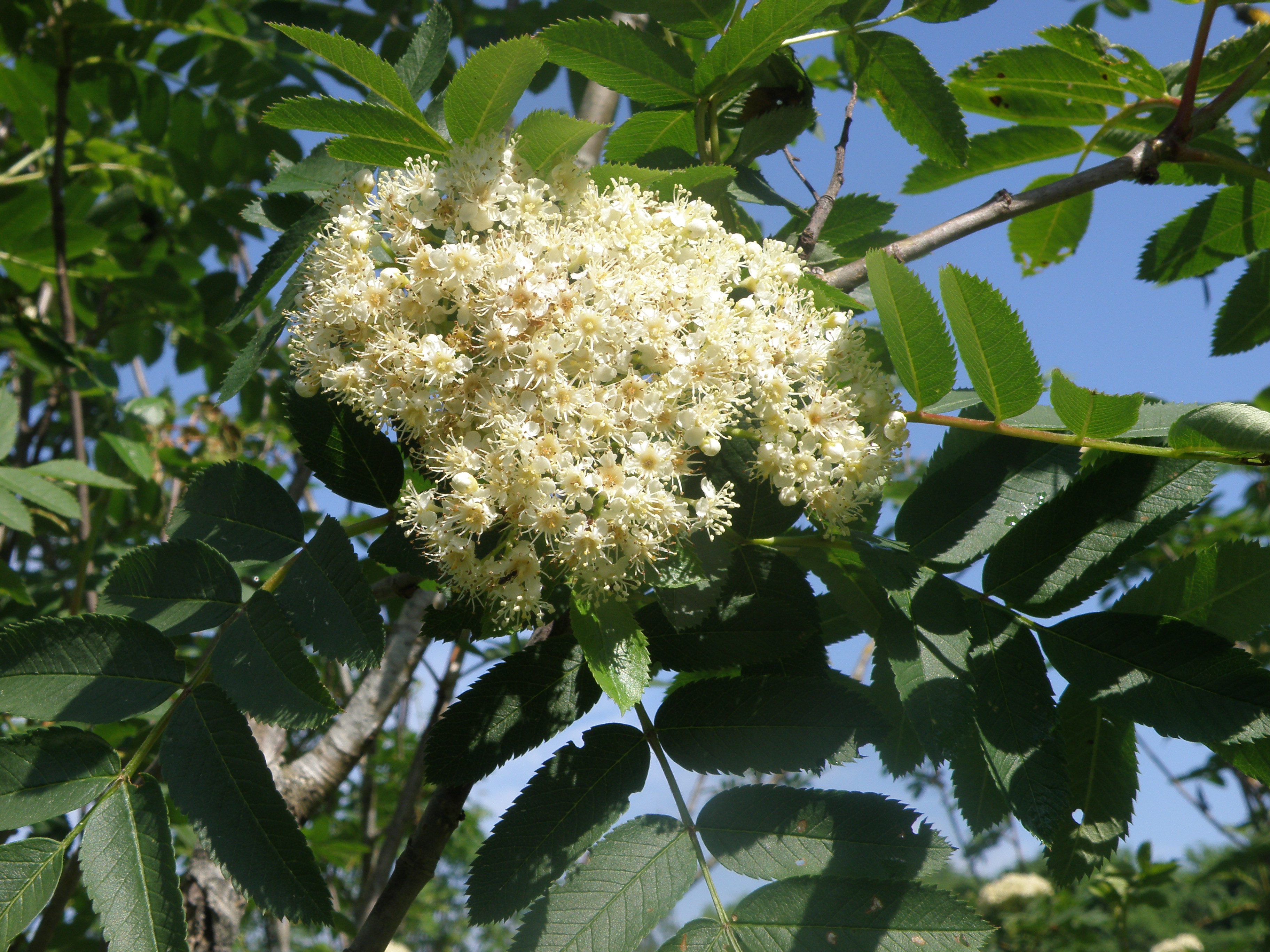 Morfoloģija. Vasarzaļš, līdz 4 m augsts krūms vairākiem stumbriem. Miza gluda, spīdīga, pelēkzaļa vai brūnganzaļa ar daudzām lenticelēm. Jaunie dzinumi olīvkrāsā, vēlāk kļūst sarkanbrūni ar gaišām lenticelēm. Pumpuri lieli, lipīgi. Lapas virspusē tumši zaļas, spīdīgas, apakšpusē zilganzaļas. Lapas ar 11-15, iegareni lancetiskām, 3-6 cm garām lapiņām. Ziedi balti, saliktā vairogā. Augļi mazi, gandrīz apaļi līdz 0,5 cm diametrā, sarkani - oranži, spīdīgi.