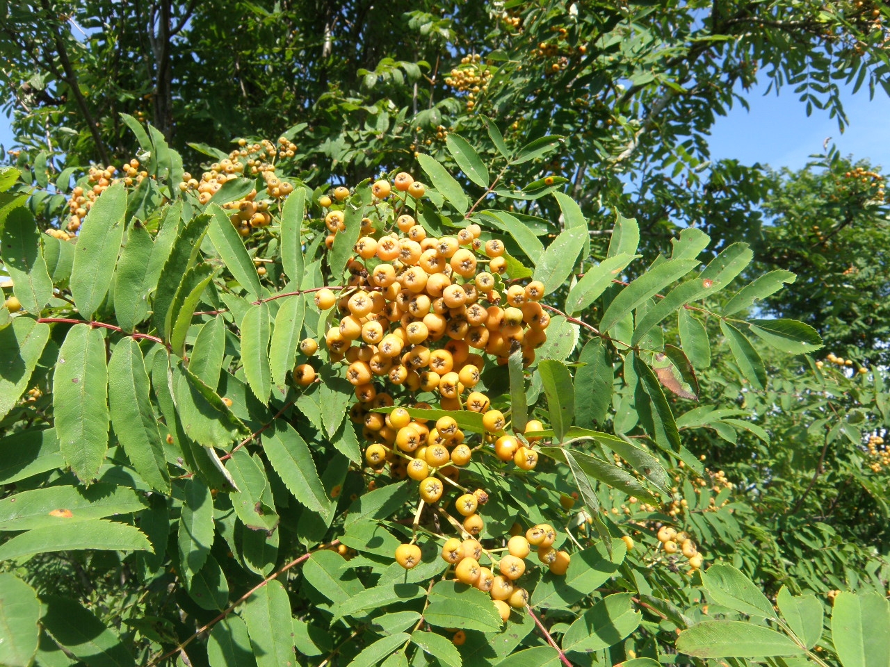 Morfoloģija. Vasarzaļš, līdz 16 m augsts koks. Dzinumi tumši brūni, kaili vai gandrīz kaili ar lenticelēm, pie pamata ar baltiem matiņiem. Pumpuri nav lipīgi, olveida, kaili vai izklaidus klāti ar smalkiem matiņiem. Lapai 4-7 iegareni lancetisku lapiņu pāri, virspuse zaļa un gluda, apakšpuse pelēkzaļa, ar matotu galveno dzīslu un zāģzobainu malu. Ziedi saliktā vairogā, balti. Augļi apaļi vai eliptiski, oranžsarkani.