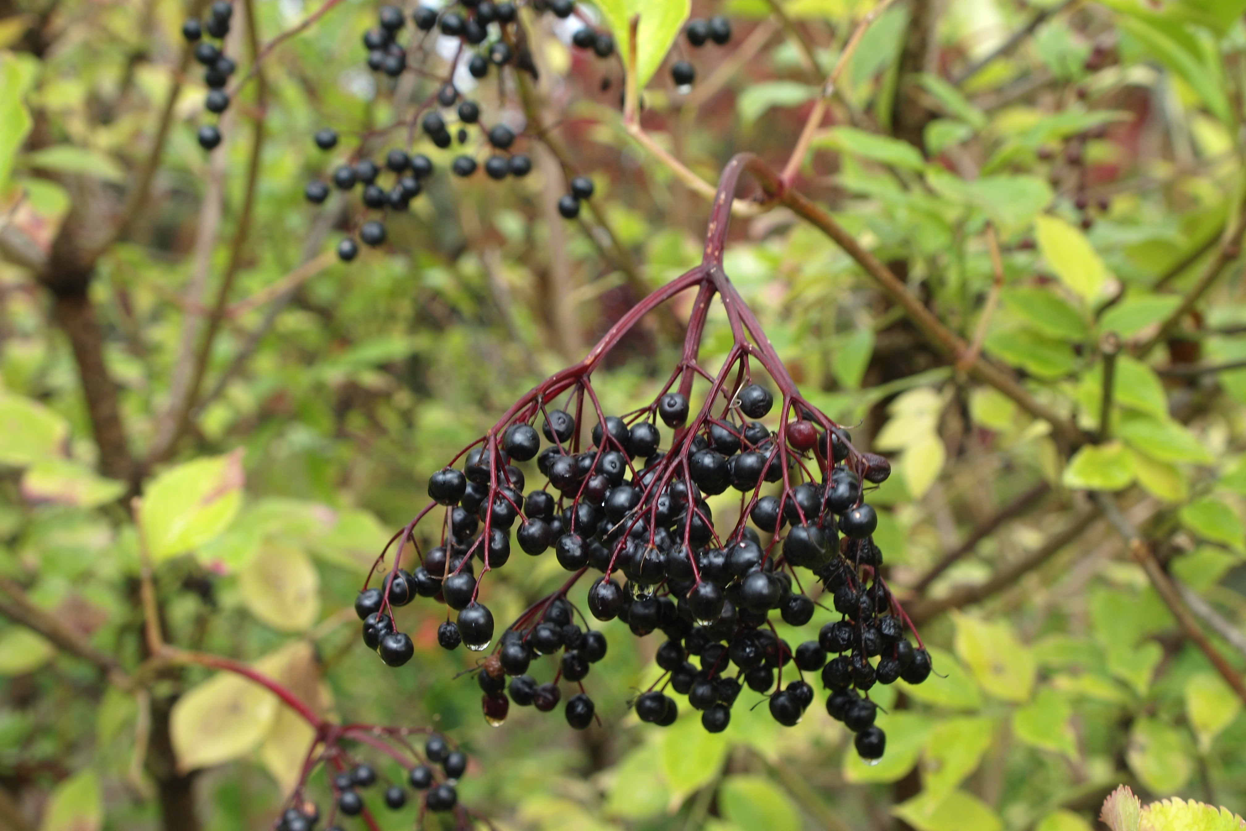 Morfoloģija. Spēcīgi augošs krūms, kas veido līdz 2 m garus dzinumus. Ziedu ķekari lieli, augļi ir melni violeti kauleņi ar trim brūniem kauliņiem, apaļi, spīdīgi, nebirst. Ogas ir aromātiskas, to kāti – tumši violeti. Sula ir violeti sarkanīga.