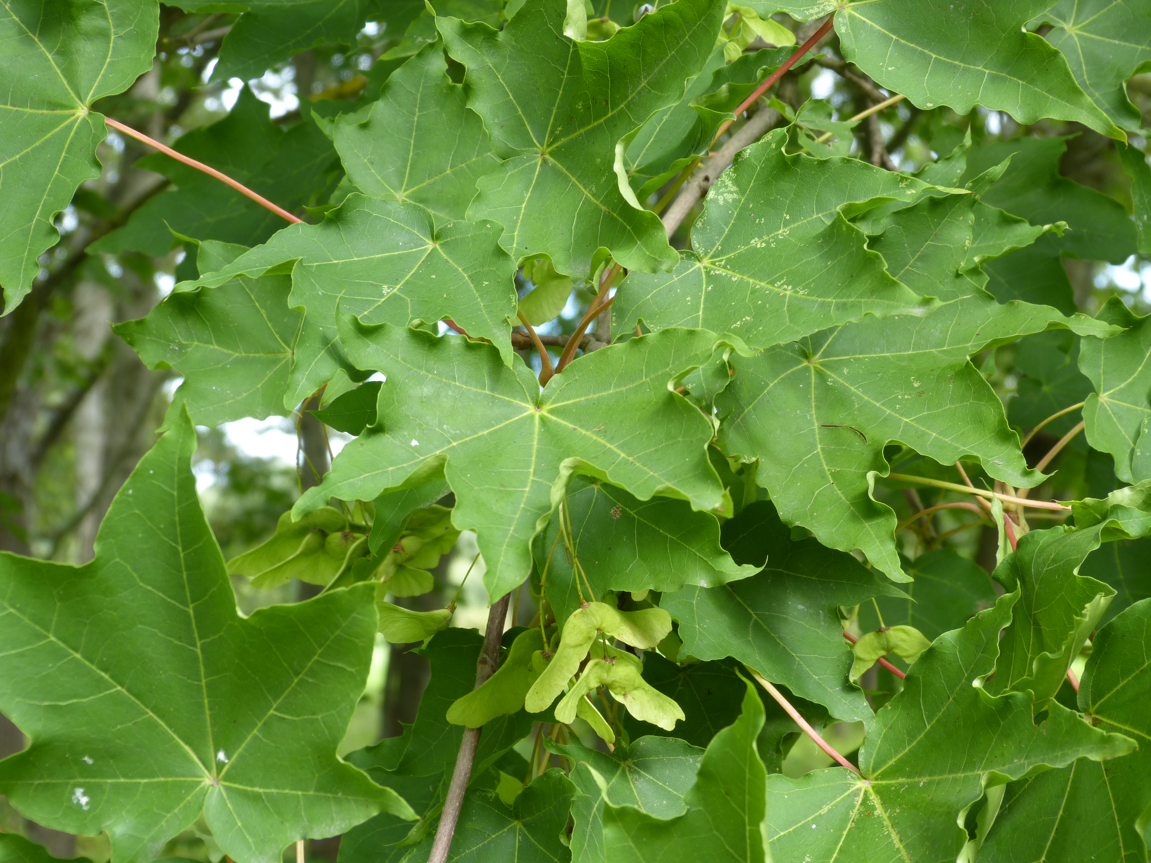 Morfoloģija. Koks vai liels krūms, līdz 10 m augsts. Lapas ar 5 daivām, 6-11 cm garas, 9-12 cm platas, no abām pusēm zaļas, kailas. Daivas plati olveida, īsas, ar īsu smailu galotni, ar veselu malu. Ziedkopa vairogveida. Spārnuļi 1,5-3 cm gari. Spārni galā nedaudz sašaurināti, izplesti šaurā leņķī. Riekstiņš saplacināts. Zied maijā, jūnijā. Augļi nogatavojas augustā, septembrī.